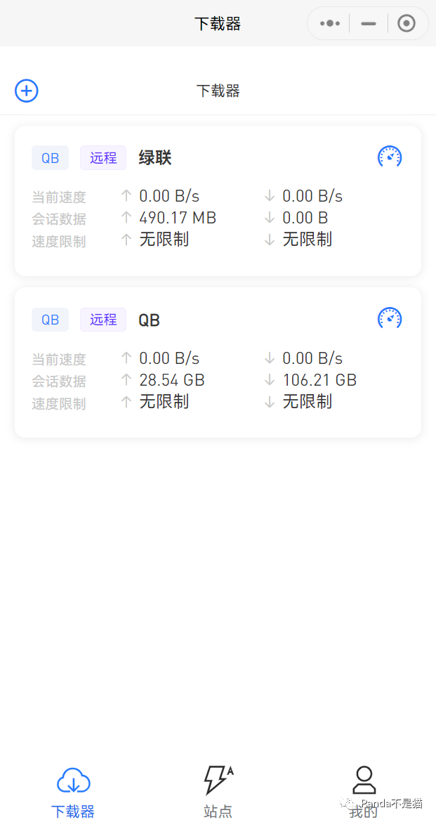 下载器添加后你便能在主界面点进下载器看到你的下载历史内容以及上传下载信息了。