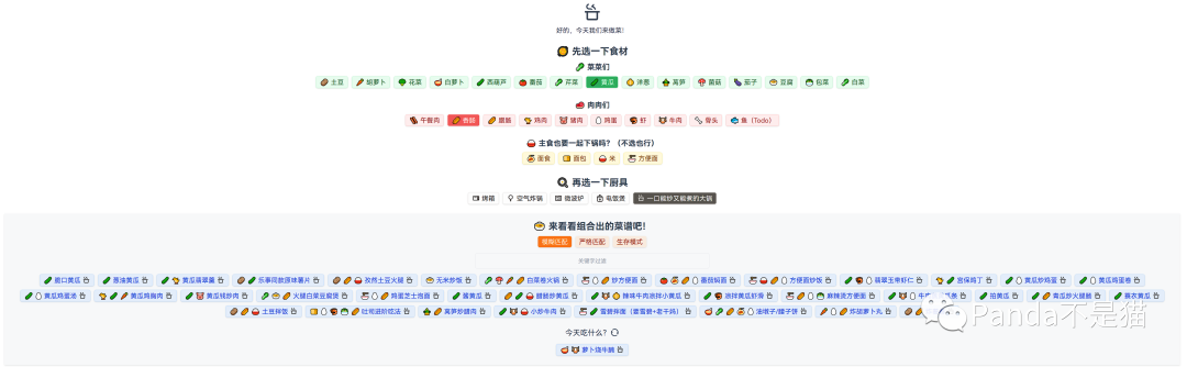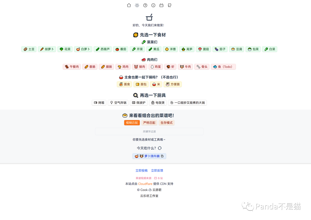 该项目是疫情期间大佬开发者开发的,项目初衷是方便特殊时期隔离在家而材料有限的小伙伴,因此菜谱材料会尽量限制在特定范围内,但很多都是家常菜,并且你能搜到的每一种菜都配有完整的视频教学。就算拿到今天对于我这种不怎么会做菜的人来说,这个项目真的泰裤辣。