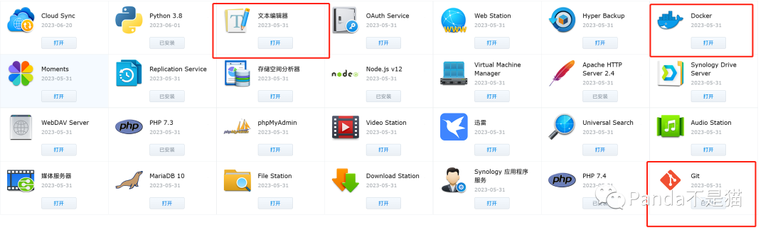首先我们需要确定你安装了如下套件:Docker,git server以及文本编辑器。docker就不用说了,git server主要用于git项目文件,而文本编辑器则可以直接在nas中编辑你的文本文件。