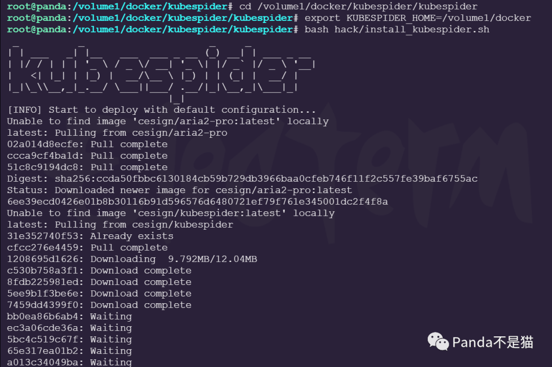 cd /volume1/docker/kubespider/kubespiderexport KUBESPIDER_HOME=/volume1/dockerbash hack/install_kubespider.sh