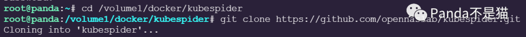cd /volume1/docker/kubespidergit clone https://github.com/opennaslab/kubespider.git