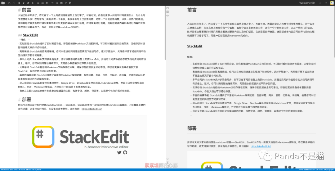 丰富的编辑功能: StackEdit提供了丰富的Markdown编辑功能,包括标题、列表、引用、代码块、表格等,使得你可以以更加直观和简洁的方式撰写文章。