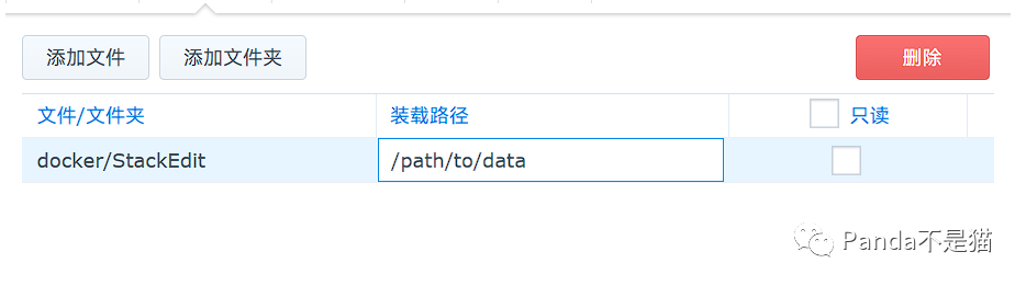 拉取之后便能在群晖的docker中看到容器了,接下来便是创建容器。在这之前我们需要在docker中新建一个StackEdit文件夹,以便用来确保数据的持久性。