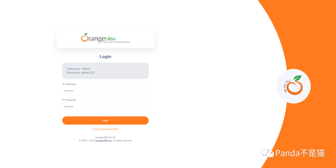安装结束点击Launch OrangeHRM就可以跳到登录界面了。