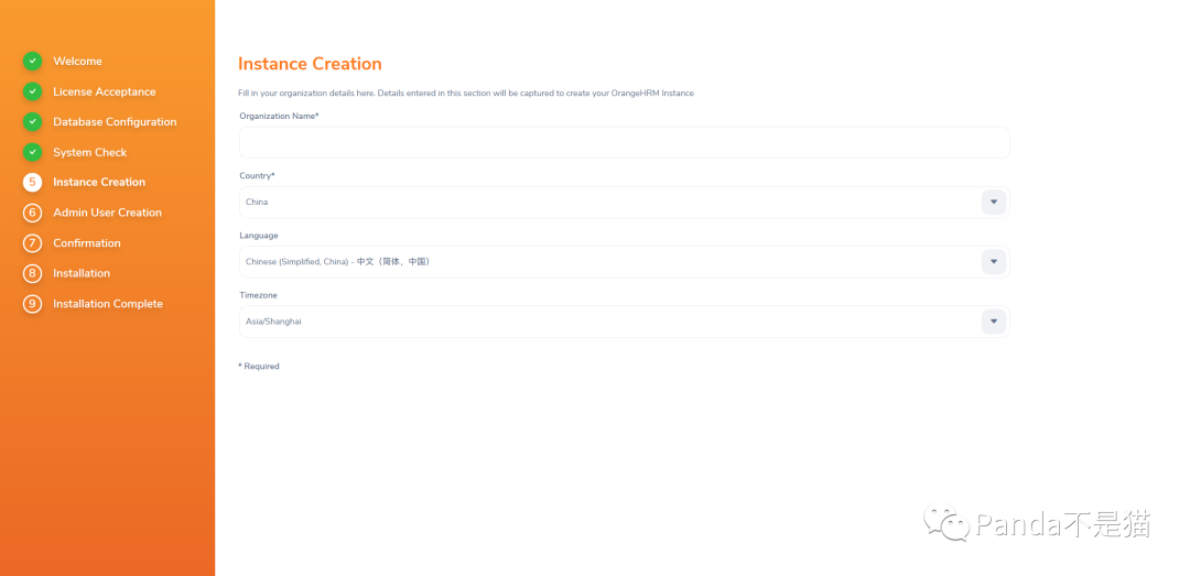 紧接着我们设置组织名称、国家、语言以及时区,设置好之后继续下一步。