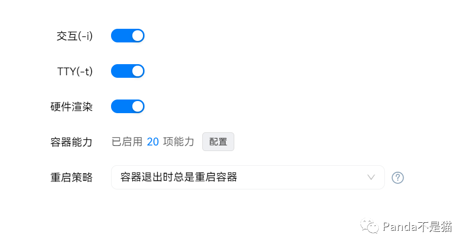 随后我们点击创建镜像,将权限以及能力全部打勾防止容器因为权限不足导致无法启动或重复启动的情况出现,重启策略选择容器退出时重启即可。