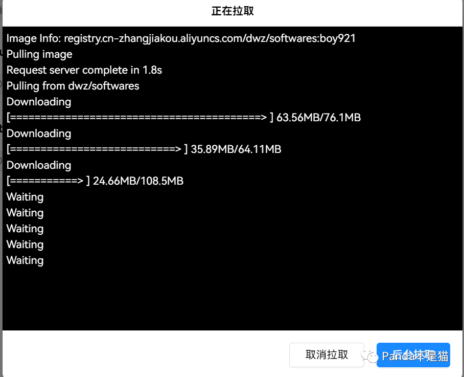 该项目的部署并不难,首先我们打开绿联的docker界面,选择添加镜像,在URL地址栏中输入:docker pull registry.cn-zhangjiakou.aliyuncs.com/dwz/softwares:boy921来进行镜像的拉取。