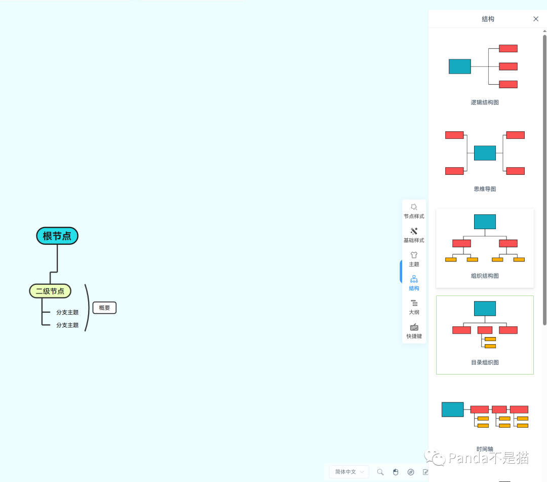 而在结构样式中又提供了很多种的结构,你可以选择各种不同的结构,用于适应你想要编辑的流程以及脑图,方便你更好的记录信息。