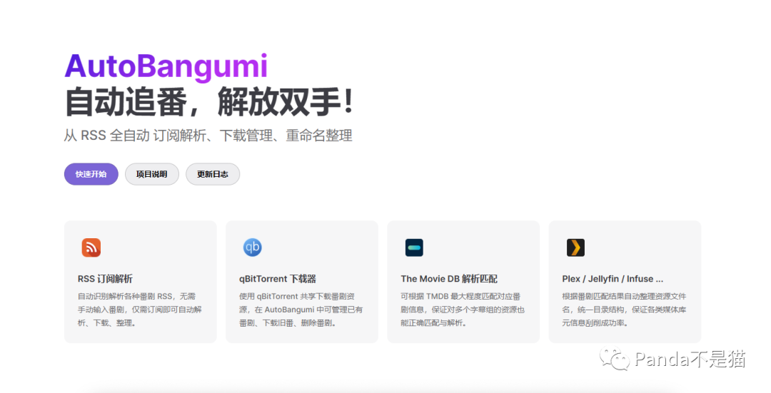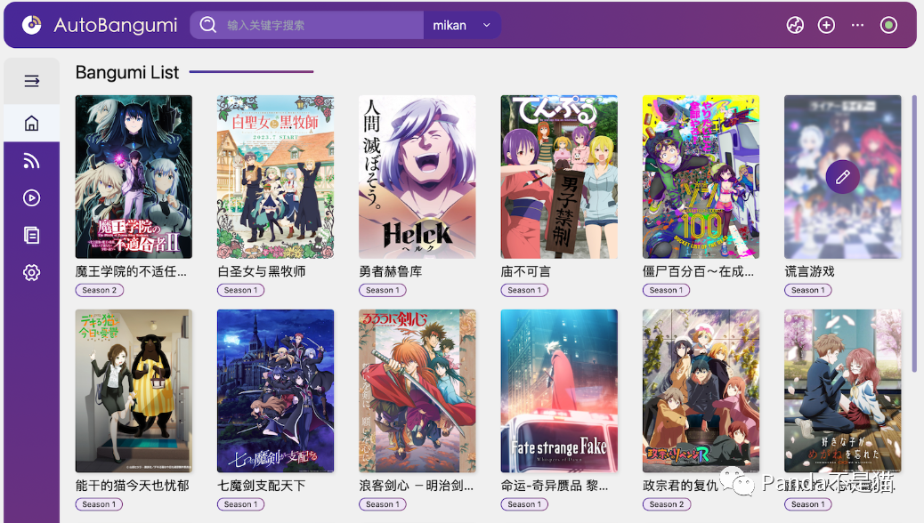 AutoBangumi是一个可实现自动化追番的服务,它提供了从RSS解析到下载与重命名整理文件的所有服务,你只需要点击一下追番,便能自动订阅当前番剧,在有更新后自动下载番剧,并实现重命名整理文件,推送到emby,plex等媒体服务器刮削。