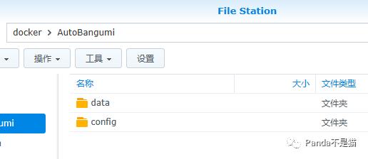 在群晖的docker下创建AutoBangumi文件夹,然后在AutoBangumi文件夹下分别创建config和data文件夹。「Docker-cli命令:」