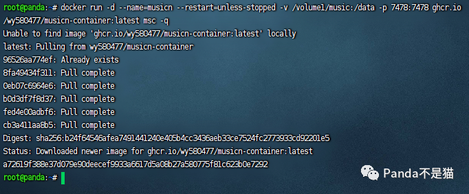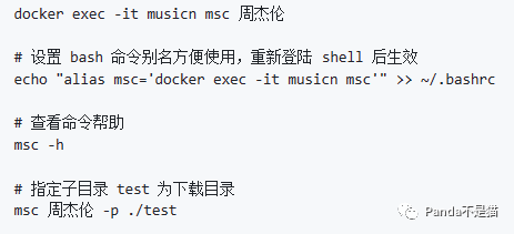 docker run -d --name=musicn --restart=unless-stopped -v 下载路径:/data ghcr.io/wy580477/musicn-container:latest tail -f