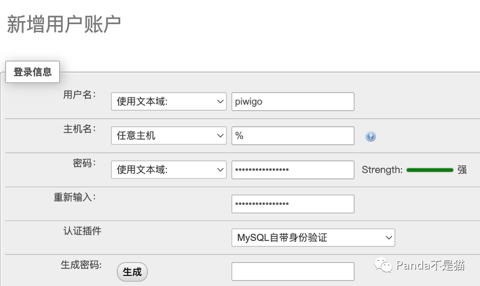首先需要用群晖自带的 MariaDB 10 数据库,建立一个供piwigo数据库。在 phpMyAdmin 中创建名为 piwigo 的空数据库,设置好密码。