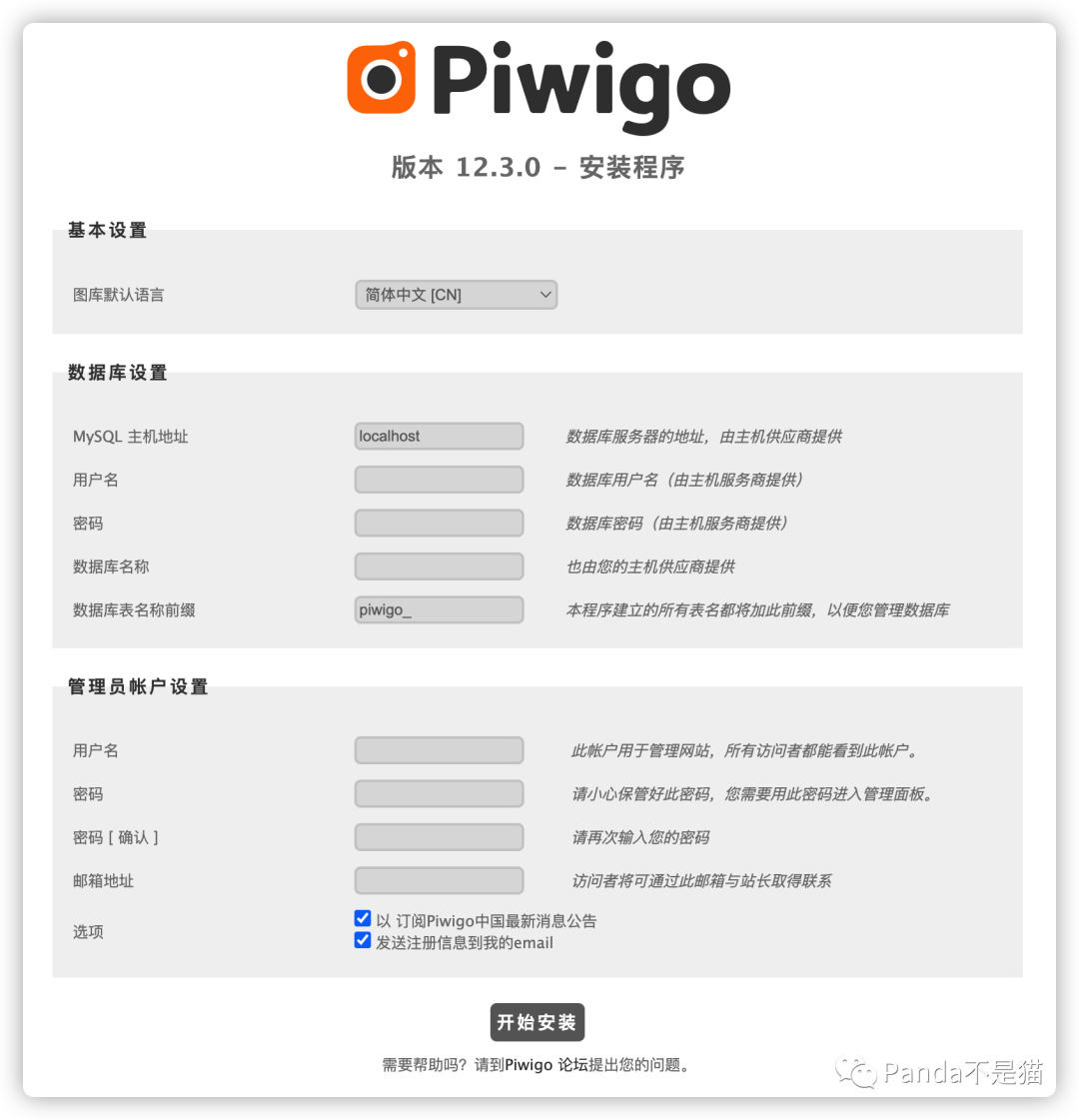 • 表名称前缀:保持默认的就可以; 安装完成之后,就可以开始添加照片了
