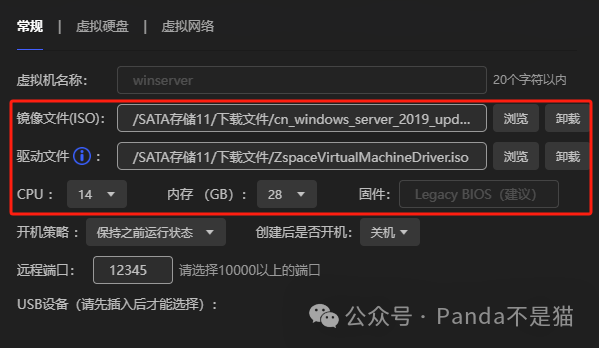 在下载好镜像之后,打开极空间的虚拟机,我们新建虚拟机(我这里已经建立好了,就不在演示过程)这里需要注意的是为了方式占用过高导致NAS内存不足重启的情况,请不要把cpu以及内存资源拉满,而是保留一部分作为余量。