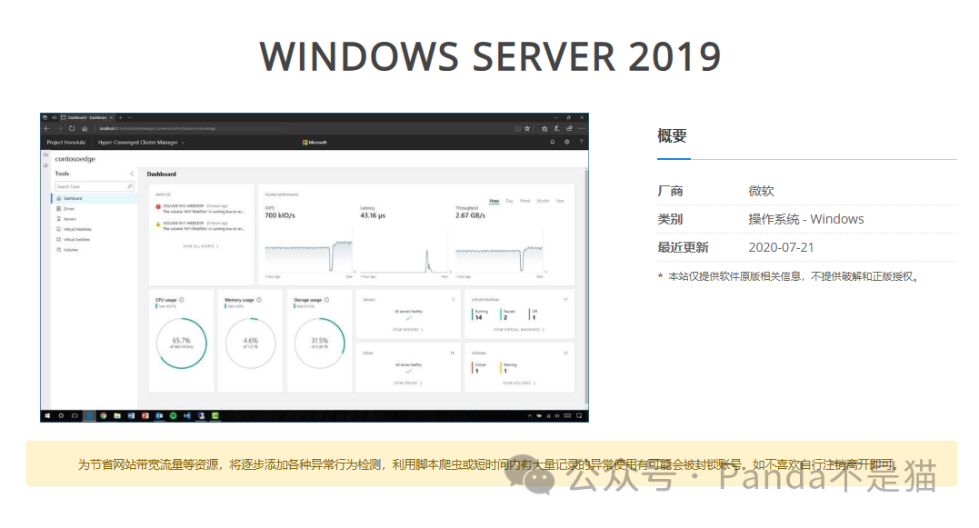 这里我为了大家都能部署成功,所以采用最为简单的方式,也就是Windows server虚拟机的形式来部署。所以首先我们需要去下载Windows server的镜像文件,这个在msdn以及各大镜像站都有,我这里推荐下载2019的版本最为合适。