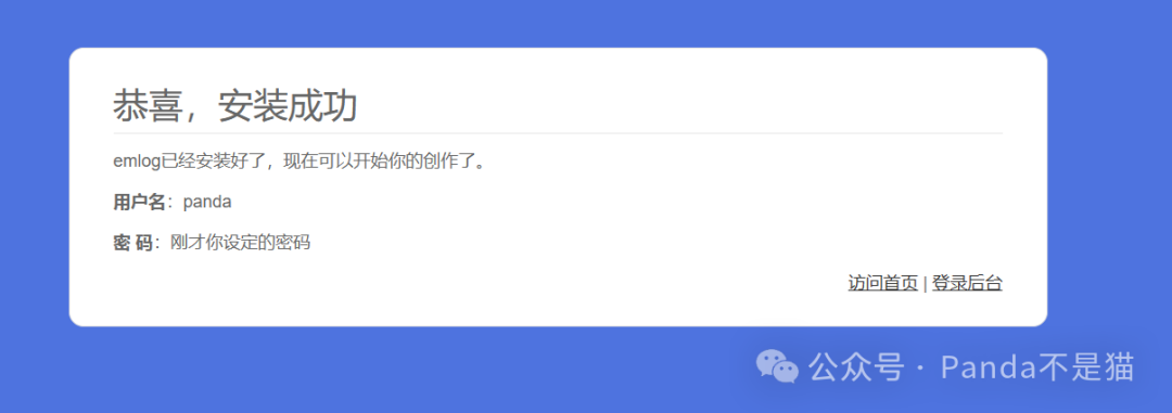 安装时注意数据库的端口,同时如果127的IP地址无法访问,可以换成你内网的实际IP地址,或许是多IP冲突导致的。安装好之后会有提示,这时候点击登录或者后台就可以看到项目了,同时下次在输入就会直接显示博客主页了。
