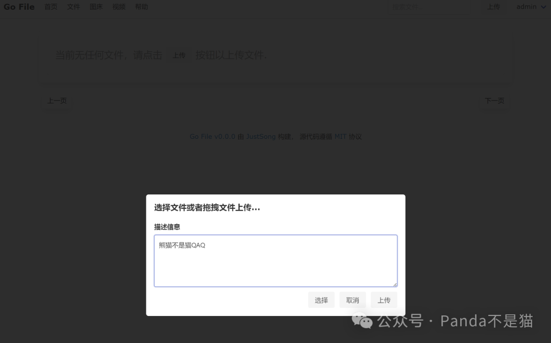 项目支持文件的拖拽以及批量上传,上传时也可以添加描述内容来对上传的内容进行说明。直接输入文字内容,则会生成一个带日期的TXT后缀文件,用来记录一些需要临时使用的账号密码或者其他数据型内容也不错。