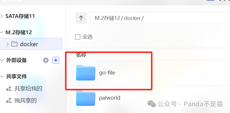 来到部署环节,如果是绿联以及极空间等轻NAS用户,通过docker界面搜索justsong/go-file下载镜像。同时不管你是什么NAS,为了数据持久化我们还需要在docker文件夹中新建go-file文件夹。