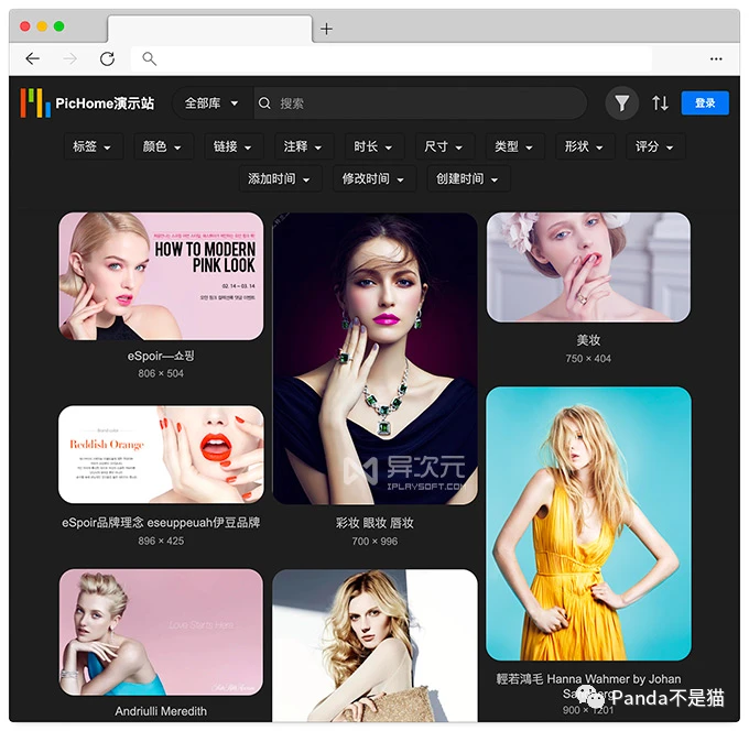 重要的是,原本已经在 Eagle、Billfish 资源库中管理的图片素材,它们的描述、标签、颜色、分类、尺寸等信息都能够得到保留和展示,甚至还支持搜索、排序等功能!非常方便!所以如果你本来就在使用 Eagle 等软件,那么 PicHome 能节省你大量的维护时间。官网:https://oaooa.com/pichome.html