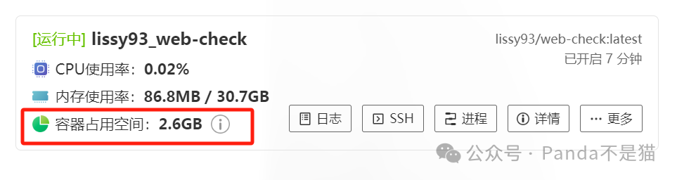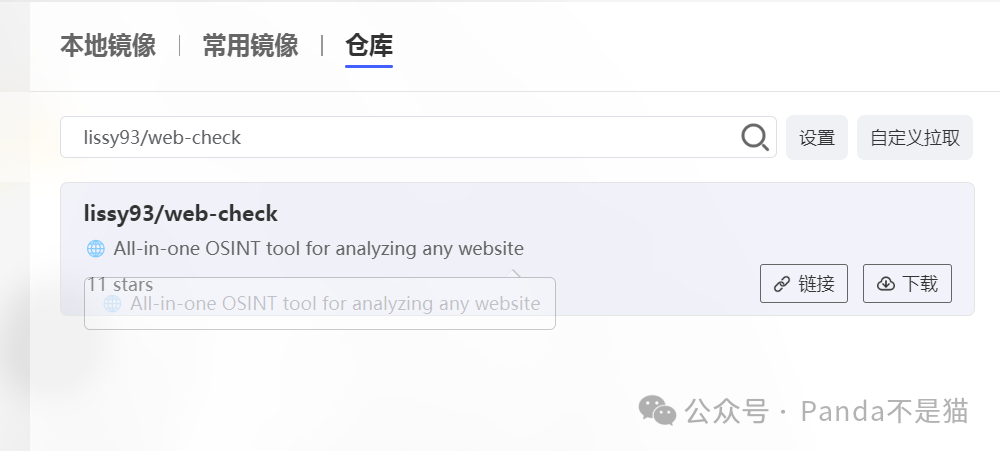 打开极空间的Docker界面,通过仓库搜索lissy93/web-check下载即可,镜像大小为2.3G,所以下载会有一点慢,请耐心等待。