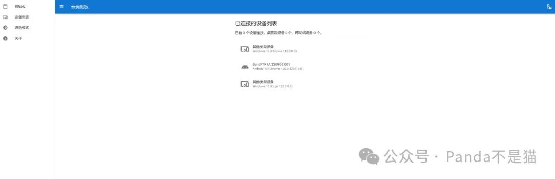 都2024年了,相信大家的智能设备至少是两台以上了吧,比如熊猫自己就有一台台式,两台笔记本以及两台平板和一部手机。而往往很多人的设备并不是同平台,也就没有所谓的信息流转功能。有时候如果你在A设备看到一段内容想要复制粘贴到B设备,就特别麻烦,总不能每次都去扫个码登录微信吧,于是云剪切板就诞生了。