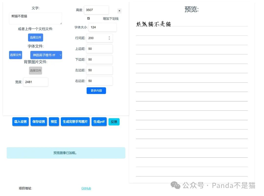 可以让你将打字的内容变为手写,很有趣。支持自定义字体、背景以及预览和pdf到处功能。我能想到的途径就是用它生成之后,打印出来,然后作为字帖使用,感觉可以练练字体啥的。