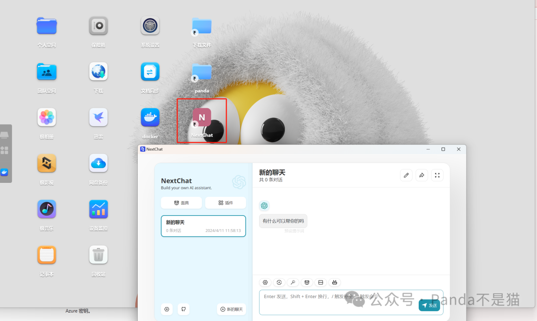 这时候我们就能直接对话了,通过极空间的远程访问功能将NextChat固定到桌面,这样便可以直接在极空间中打开服务,从而实现对话了。