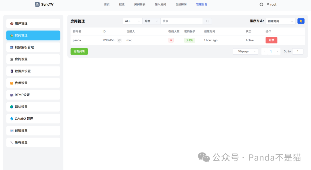 SyncTV拥有不错的后台管理,其中包括了用户管理、房间管理、视频解析管理以及网站设置等等。所以如果你发现有什么违规的内容,可以直接在这里采取措施封禁掉房间号。