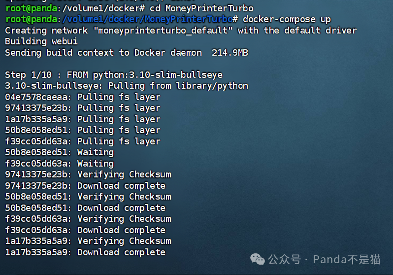 最后打开群晖的SSH端口,使用SSH工具连接之后输入sudo -i获取管理员权限,cd到项目的根目录输入docker-compose up启动项目。