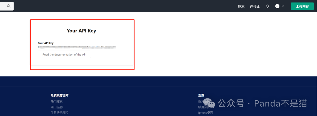 文件准备好之后我们该需要获取Pexels的API Key,直接去Pexels官网注册账号即可。