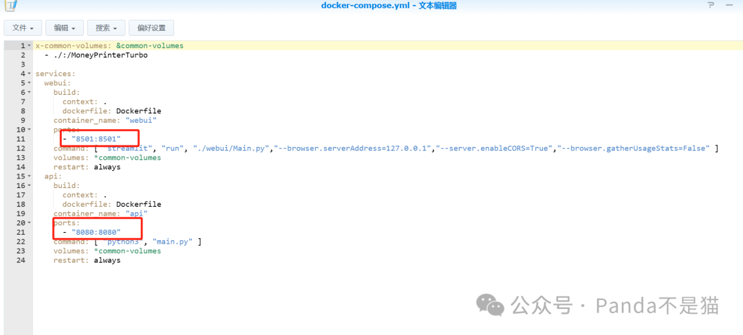 最后我们还需要检查一下docker-compse.yml文件中的映射端口是否冲突,如果有冲突记得更改。