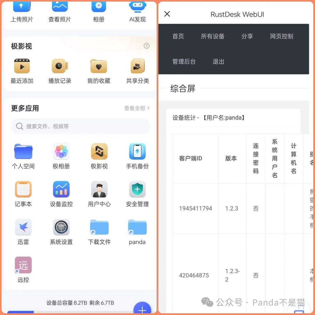 或者你可以直接使用极空间的远程访问功能,将项目添加到其中随后将其快捷方式添加到首页,便可以通过极空间客户端或者极空间的手机APP直接打开项目(极空间自带穿透)在进行网页远控了。