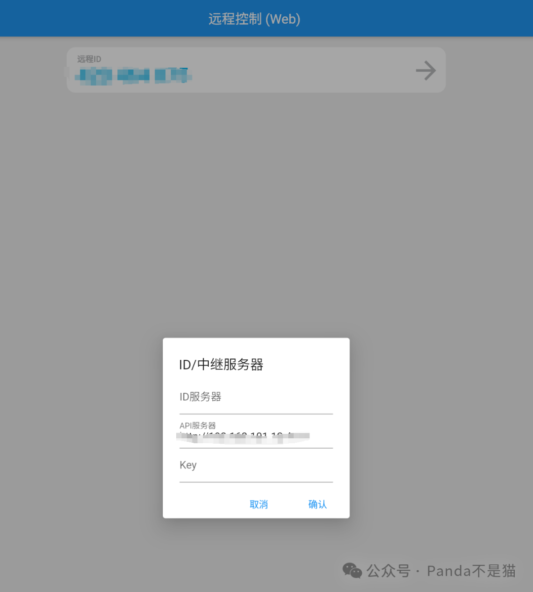 网页控制会打开一个新的网页,通过填写API服务器地址或者ID服务器地址后输入设备ID则可以连接到设备了,非常方便。(不过目前仅支持非SSL模式,也就是不能使用https协议)