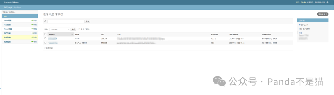 仅接着便是管理后台了,这里可以看到你的用户列表,设备列表以及链接列表,右上角也可以在此修改你的密码。