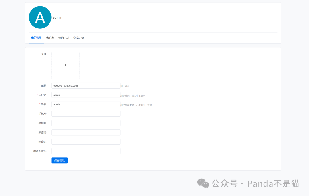 首先我们看用户中心,账号管理,自己的库管理以及下载和浏览记录都能看到。完善的用户体质对于多用户管理也极为方便。