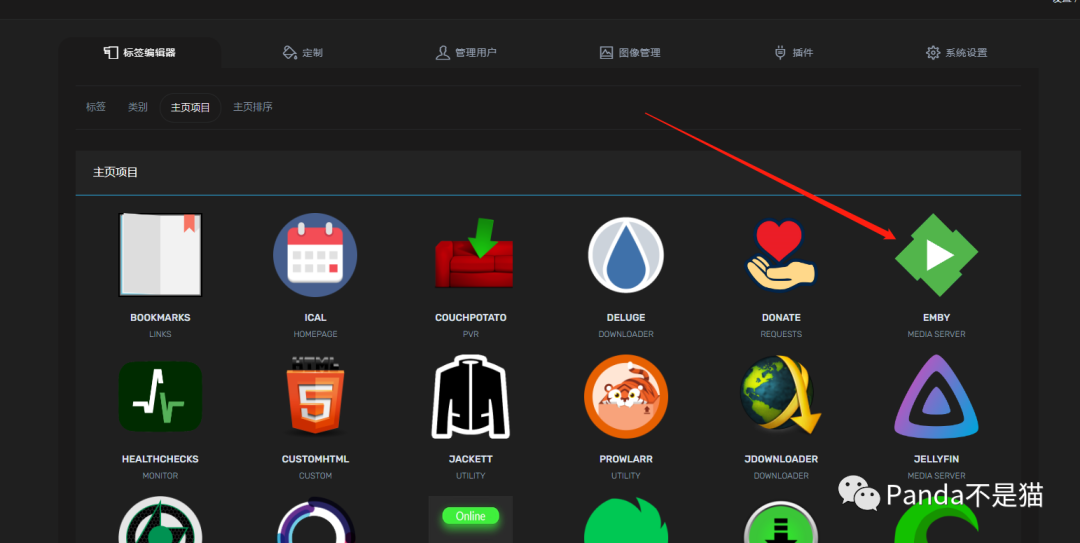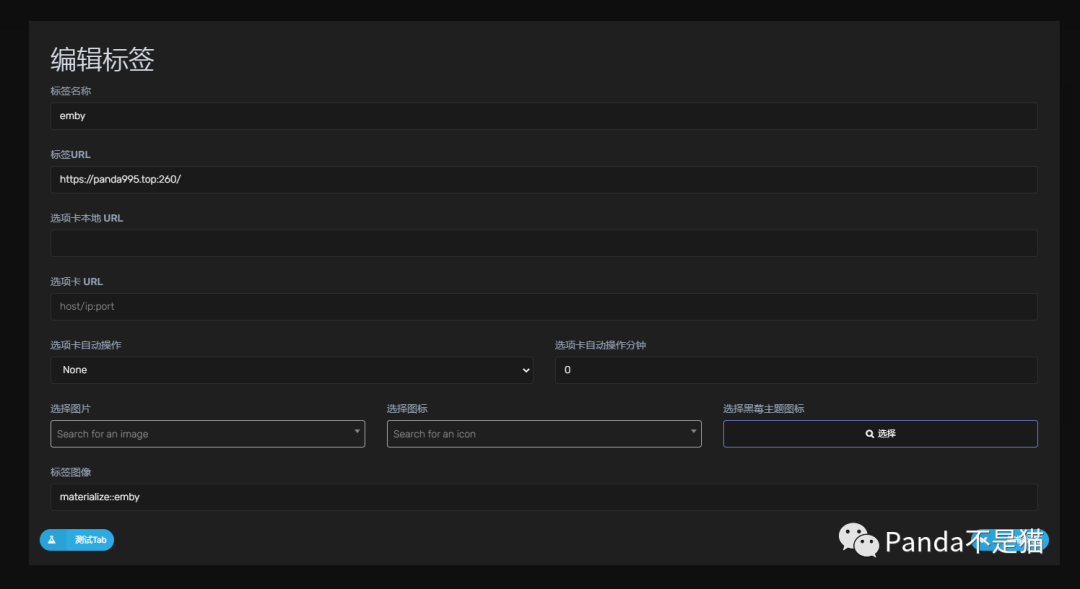添加新标签,这里我们选择emby,图标容器有自带得,这里直接选择emby即可,标签URL即为你emby得地址。这里设置好后我们还需要点一下生效才会显示。