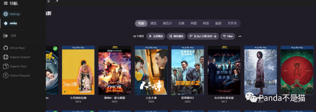 除了上面得方式,你还可以通过api来添加emby,这样也可以直接在导航页界面显示emby得内容,实现不跳转。