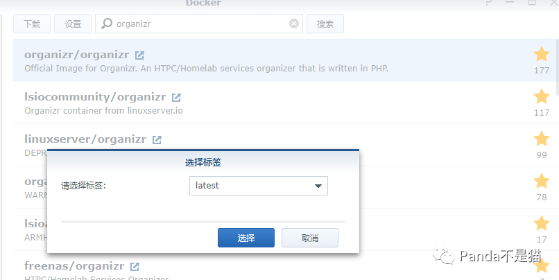 在注册表中搜索 organizr ,选择 organizr/organizr,这是官方的镜像,版本选择 latest。
