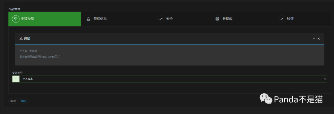安装类似选择个人版本,然后建立管理员用户名和密码。