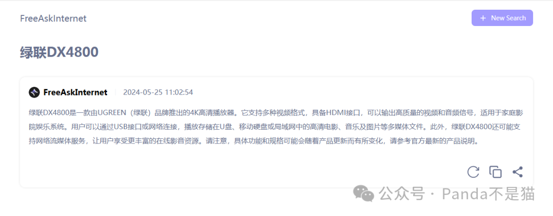 如今NAS也开始引入各种AI的概念,不管是在相册识别上、还是文件搜索上,能用到AI的地方也一定要塞进去。而今天要介绍的便是一款私密且在本地运行的搜索聚合器和答案生成器—FreeAskInternet。它集成了GPT与searxng,可通过将搜索结果与AI结合,基于搜索结果生成答案。