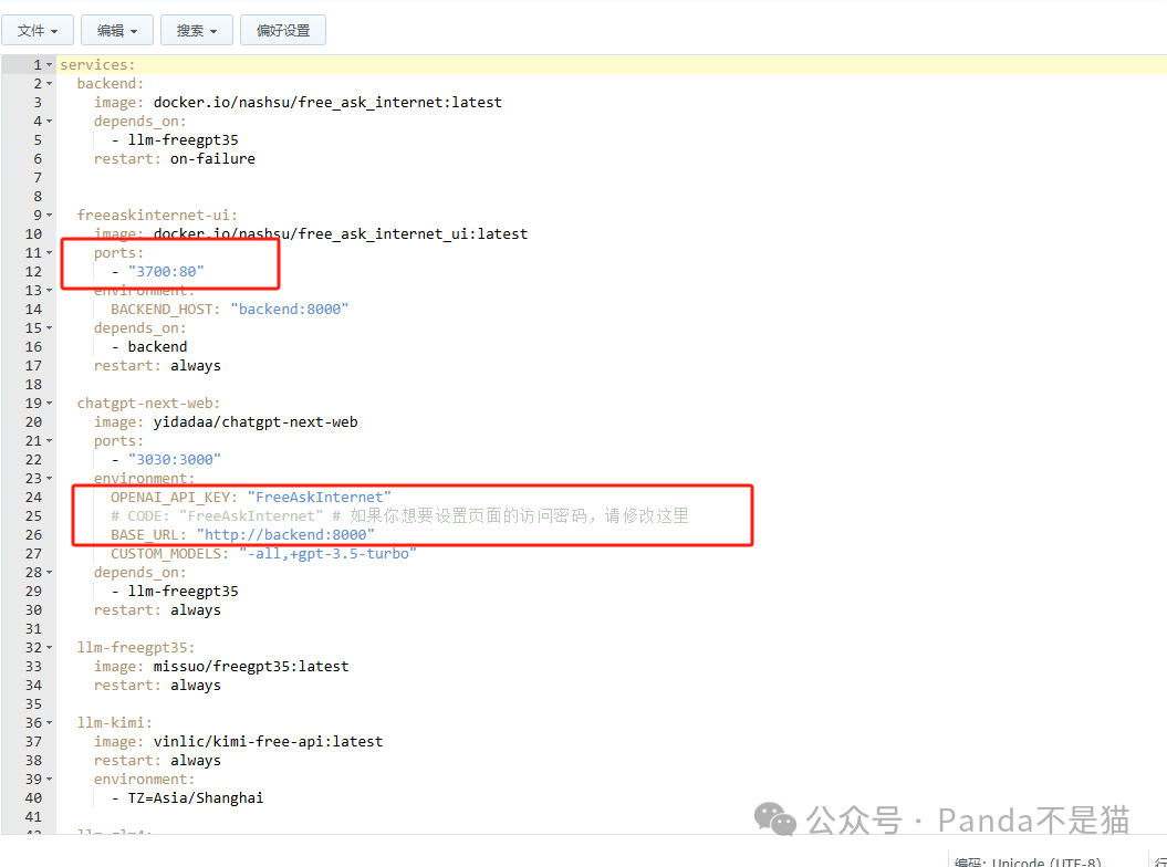项目内置了各种模型的free-api,如果你不需要某一个模型,那么也可以直接在文件中删掉该模型的容器命令部分。默认情况下,该项目一共具备8个容器。