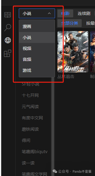 上面可进行筛选,分为了漫画、小说、视频、音频以及游戏,不过目前有用的只有漫画,小说以及音视频。