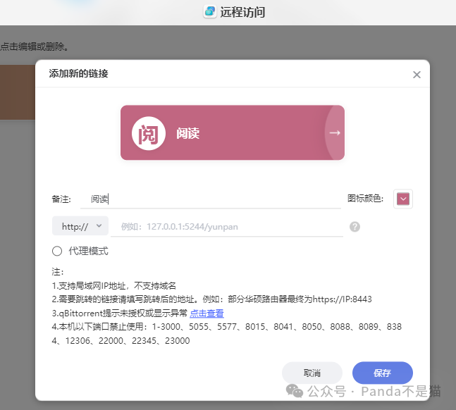 如果需要外网访问,那么可以借助极空间的内网穿透,通过远程访问功能实现外网访问,同时将新建的访问添加到首页可实现APP中直接访问,极为方便。