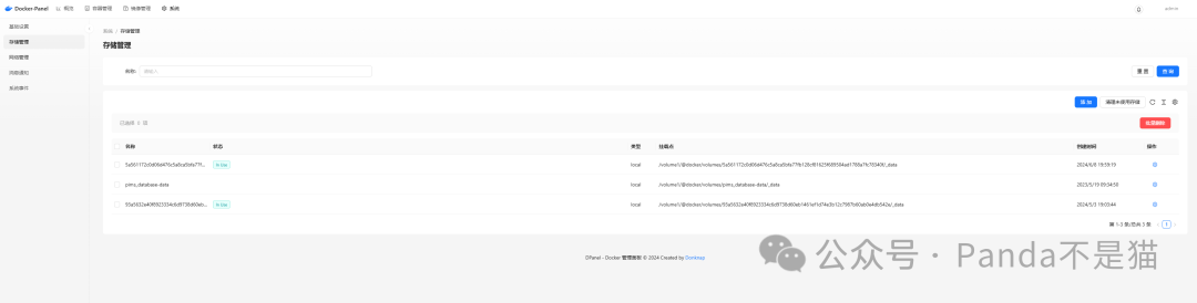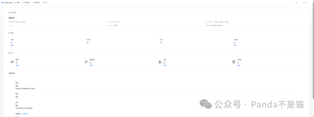 项目的界面很简洁,但内容却并不少。在主界面能看到系统信息、容器信息、其他信息以及存储用量,其中存储用量会按照块状展示,当然会有一点延迟,因为需要计算每一个容器的存储空间大小。