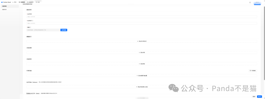 通过顶部的选项切到容器管理这一栏,可以看到创建容器以及容器列表。目前该项目暂不支持docker-compose堆栈,但新项目后面应该会更新该功能。创建容器界面很详细,从端口、关联容器到环境变量都有相关设置,且整体操作也很简单。