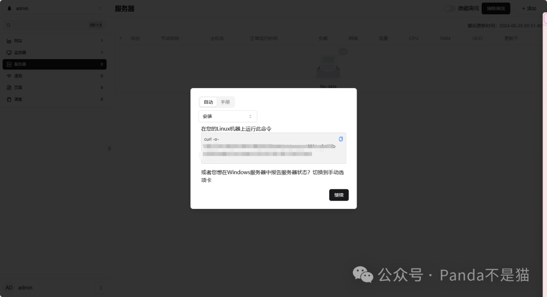 再往下就是服务器的监控,这需要手动在服务器中运行命令,由于熊猫这里没有空余的服务器也就不做展示了,感兴趣的可以自行尝试。