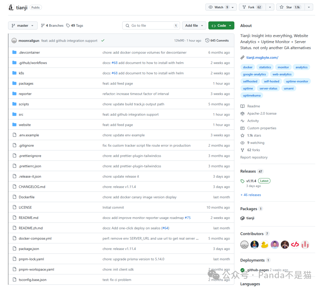 熊猫介绍过很多监控项目了,例如之前的uptime、Statping、Umami等等,但这些项目都存在一个问题,那就是不全面。例如uptime或者Umami这种只能作为web网站监控,想要监控服务器有需要部署另外的。那么有没有一款多合一的项目呢?还真有!「tianji」一款支持网站分析、运行监控以及服务器状态监控的项目,整合了Website analytics、Uptime Monitor以及Server Status的多种特性。