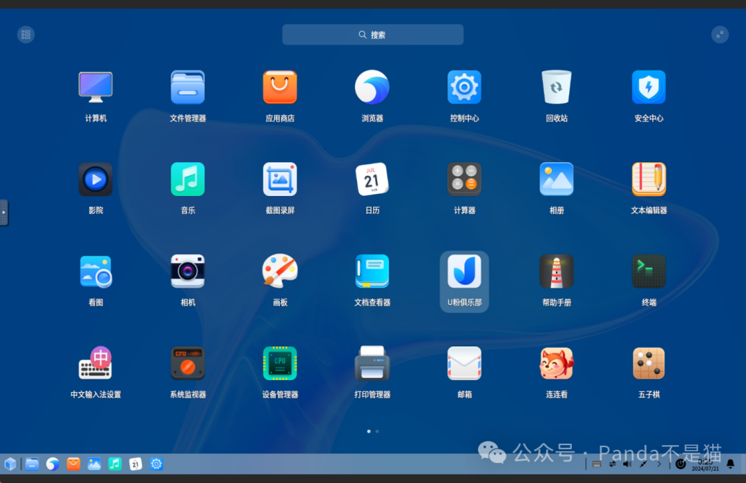 点击左下方能打开启动器,这里会显示统信OS目前安装的所有软件。