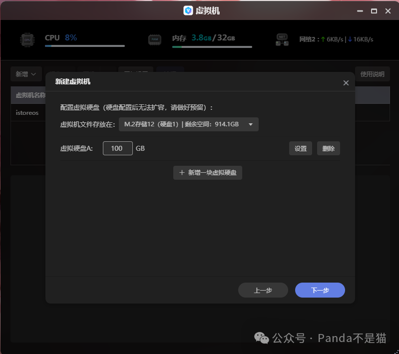 虚拟硬盘配置这里根据情况给,如果要长期使用,可以适当给高一点,如果只是玩玩,那么50G其实也足以了。