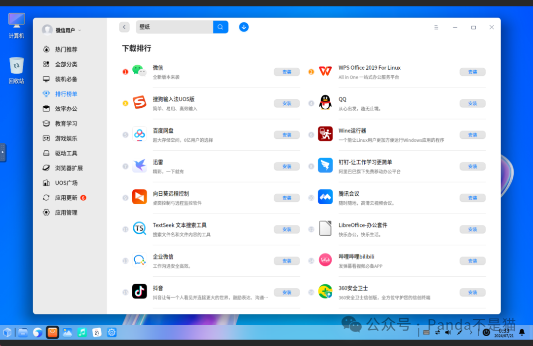 前段时间熊猫用极空间虚拟机体验了一把银河麒麟操作系统,而作为目前国产系统的佼佼者之一,其实麒麟并不是国企以及政企的主要系统,更多的其实还是统信OS。文章发出就有人让我试试统信OS,既然极友们提了需求,那我自然是满足大家了,今天便保姆式的带大家体验一下统信OS!